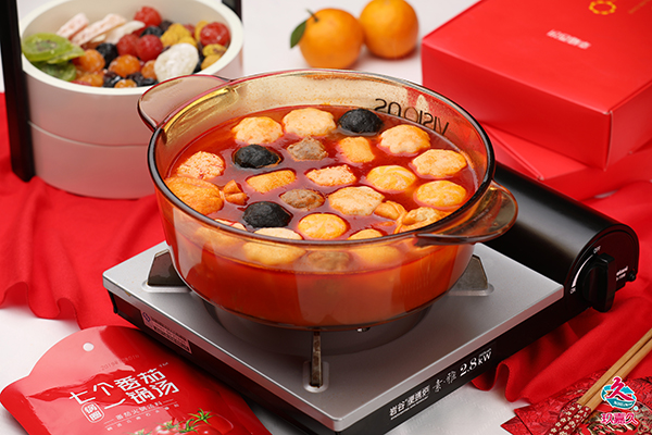 紅紅火火:番茄醬汁打底,放進玖嘉久的丸滑,就這樣新鮮火鍋出爐了!吃了這火鍋,