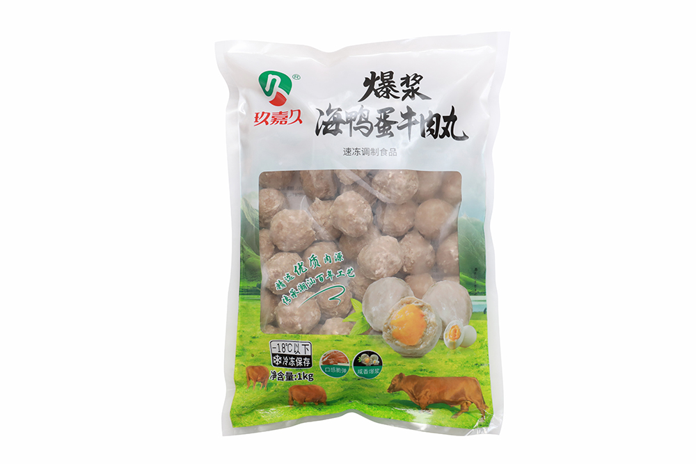 產(chǎn)品特性:北部灣特有海鴨蛋+精選黃牛肉,有火山爆漿般的沖擊感,Q彈爽口。